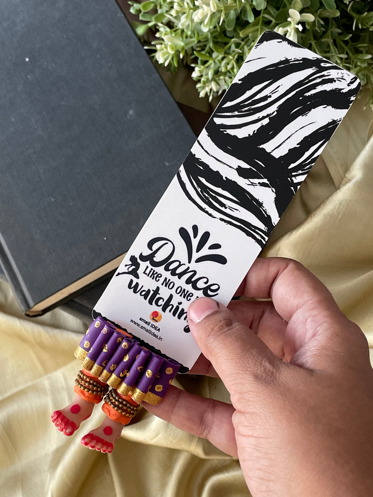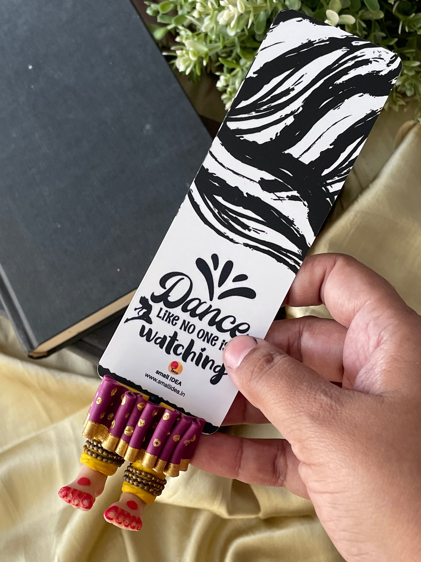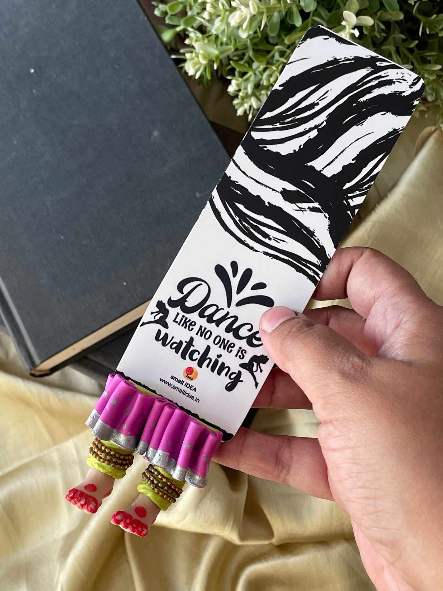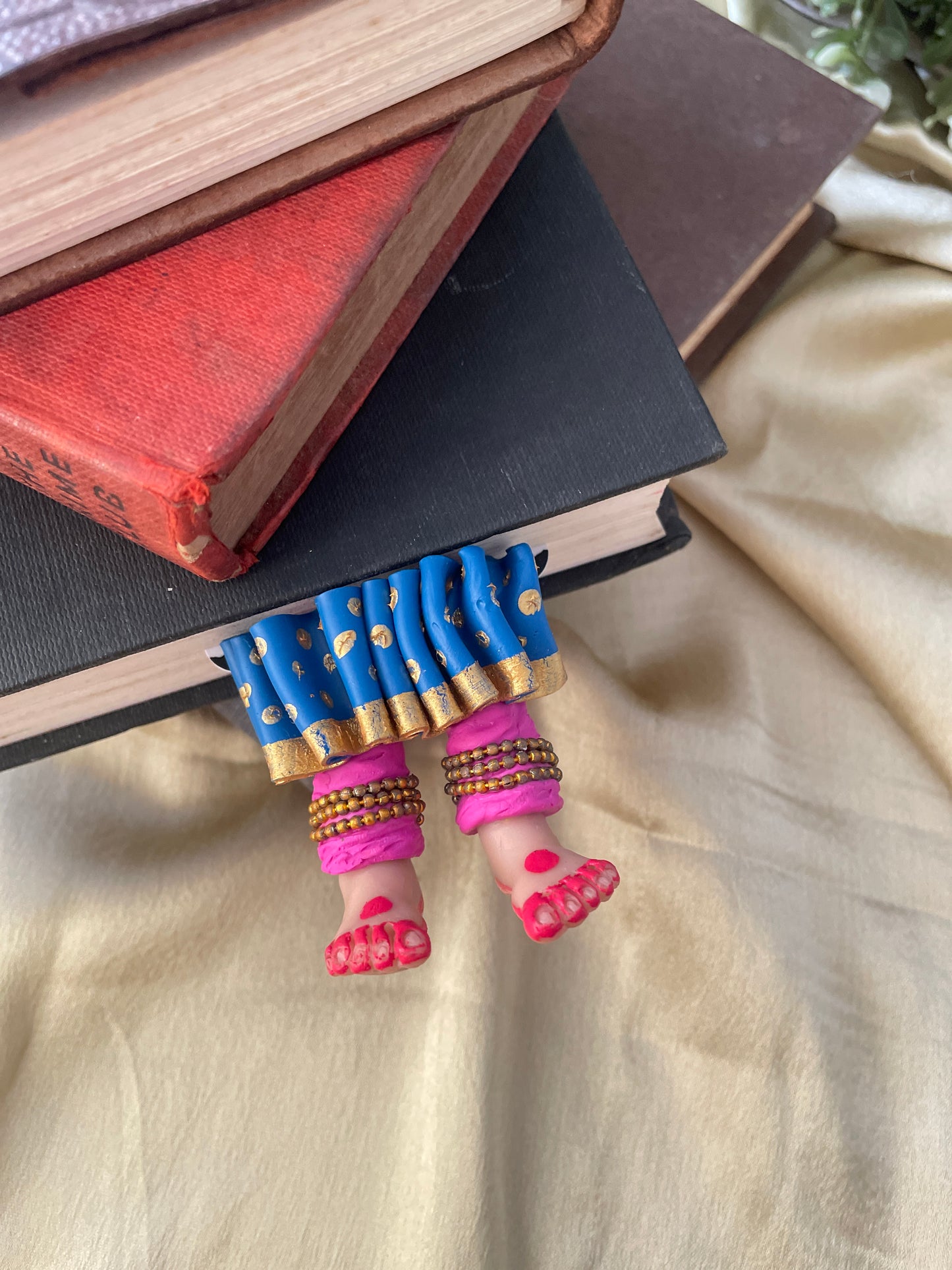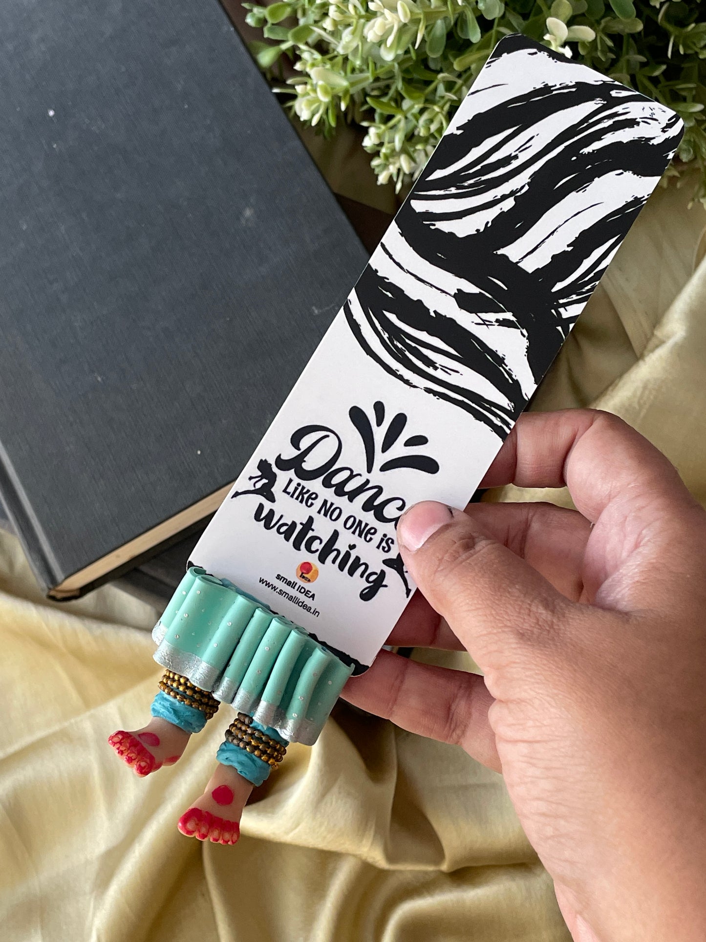 "Laissez-vous libre !" dit ce magnifique marque-page miniature aux longues jambes fait à la main danseuse kathak ! Conçu pour encourager un lecteur de livre à cesser de se retenir, ce marque-page personnalisé affiche des lignes éclairantes. Ce marque-page les présente dans une essence indienne en incluant la moitié inférieure des jambes et des pieds d'un mini danseur Kathak, avec anarkali, ghunghroos et alta !