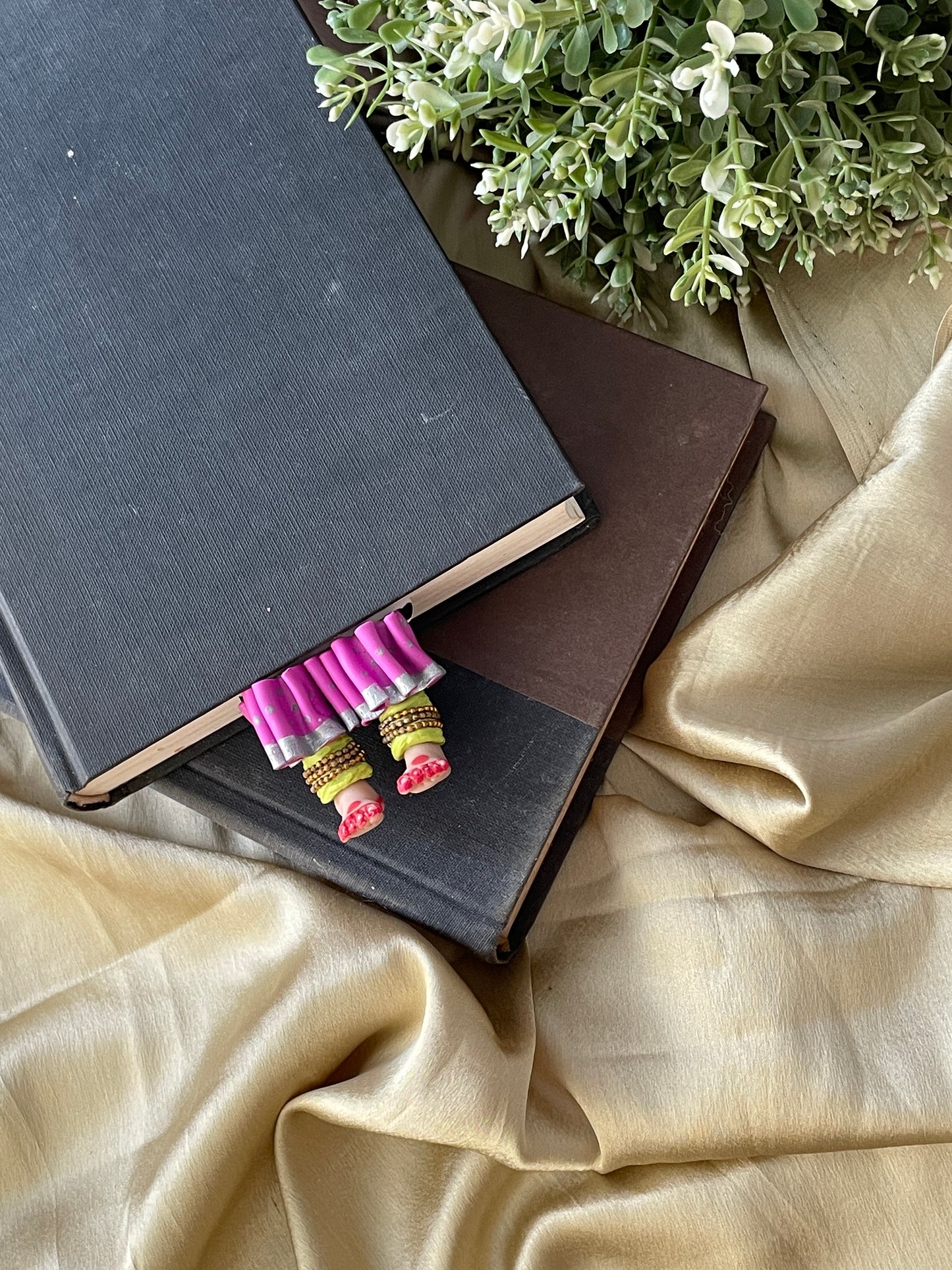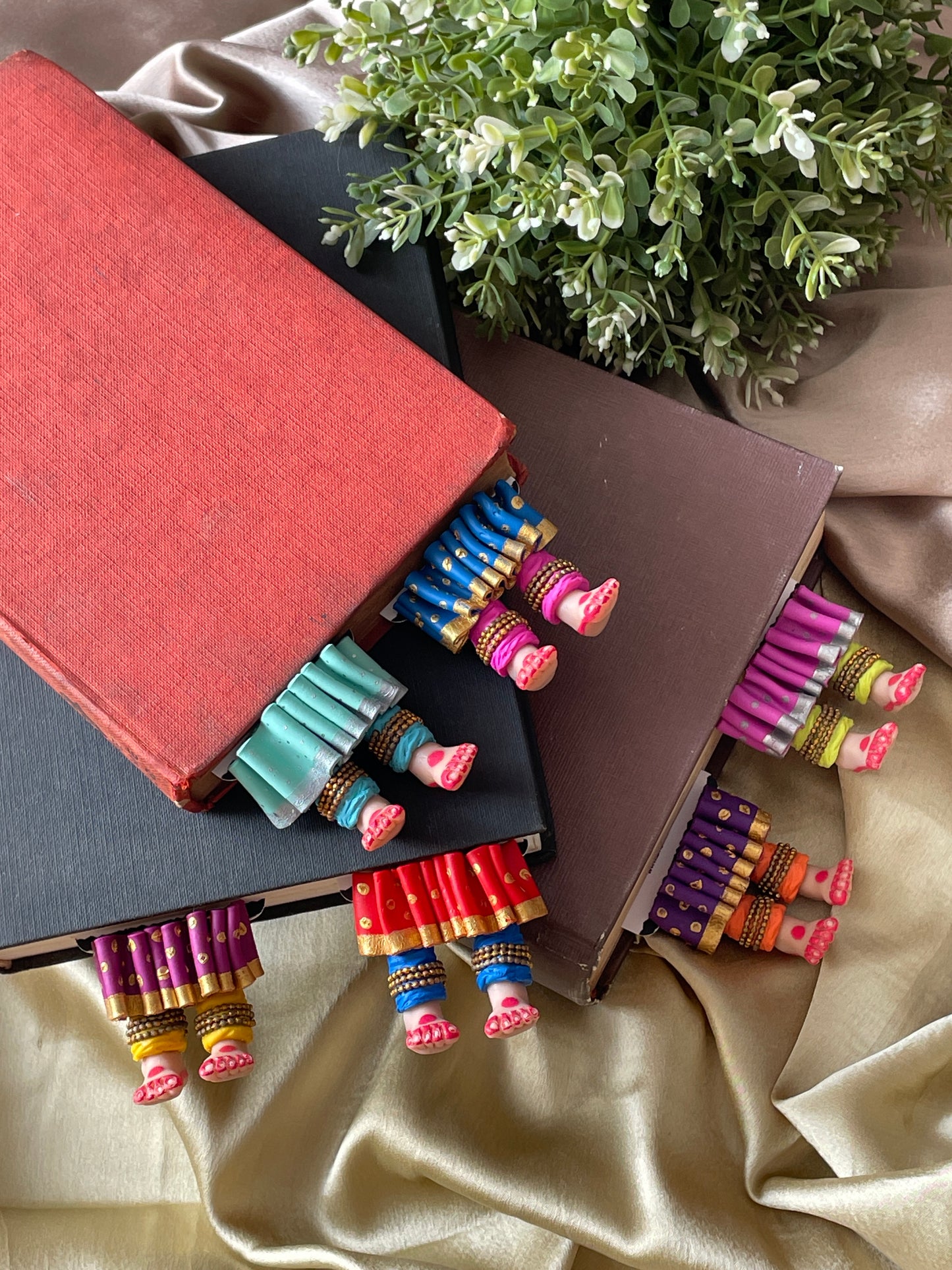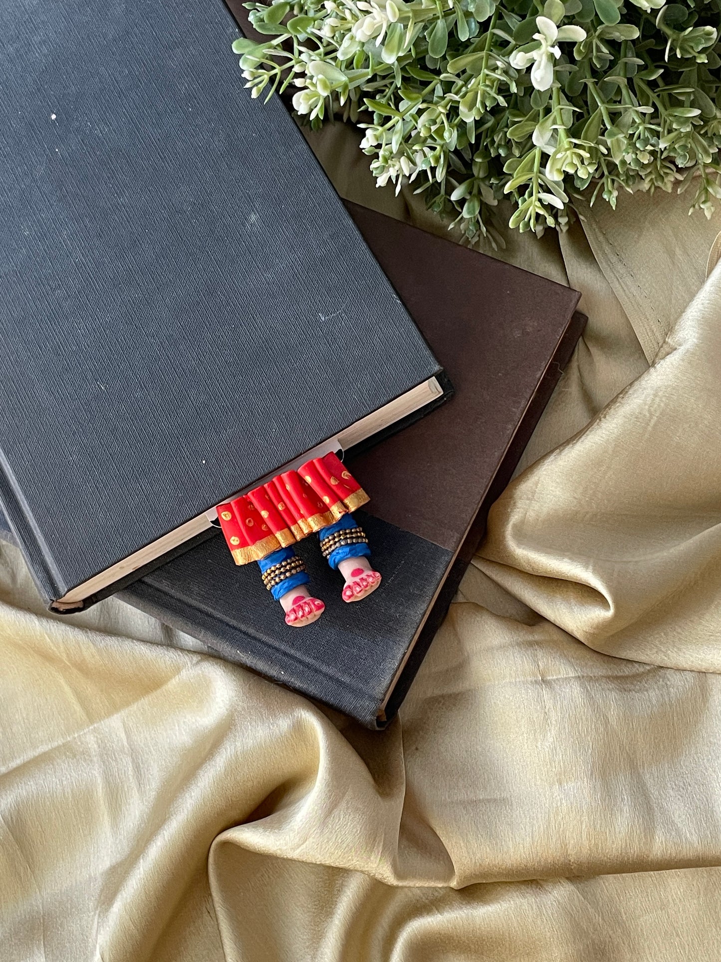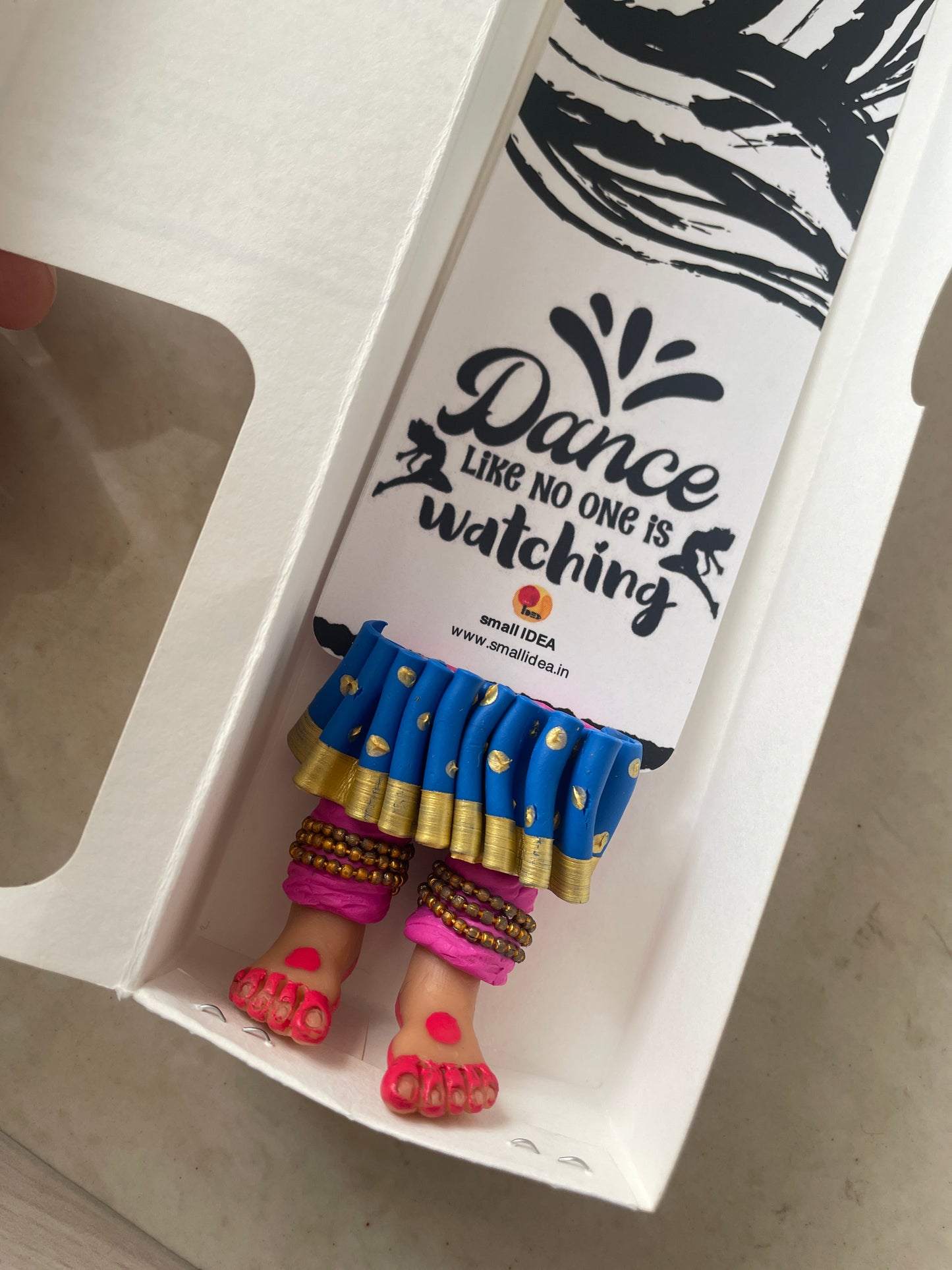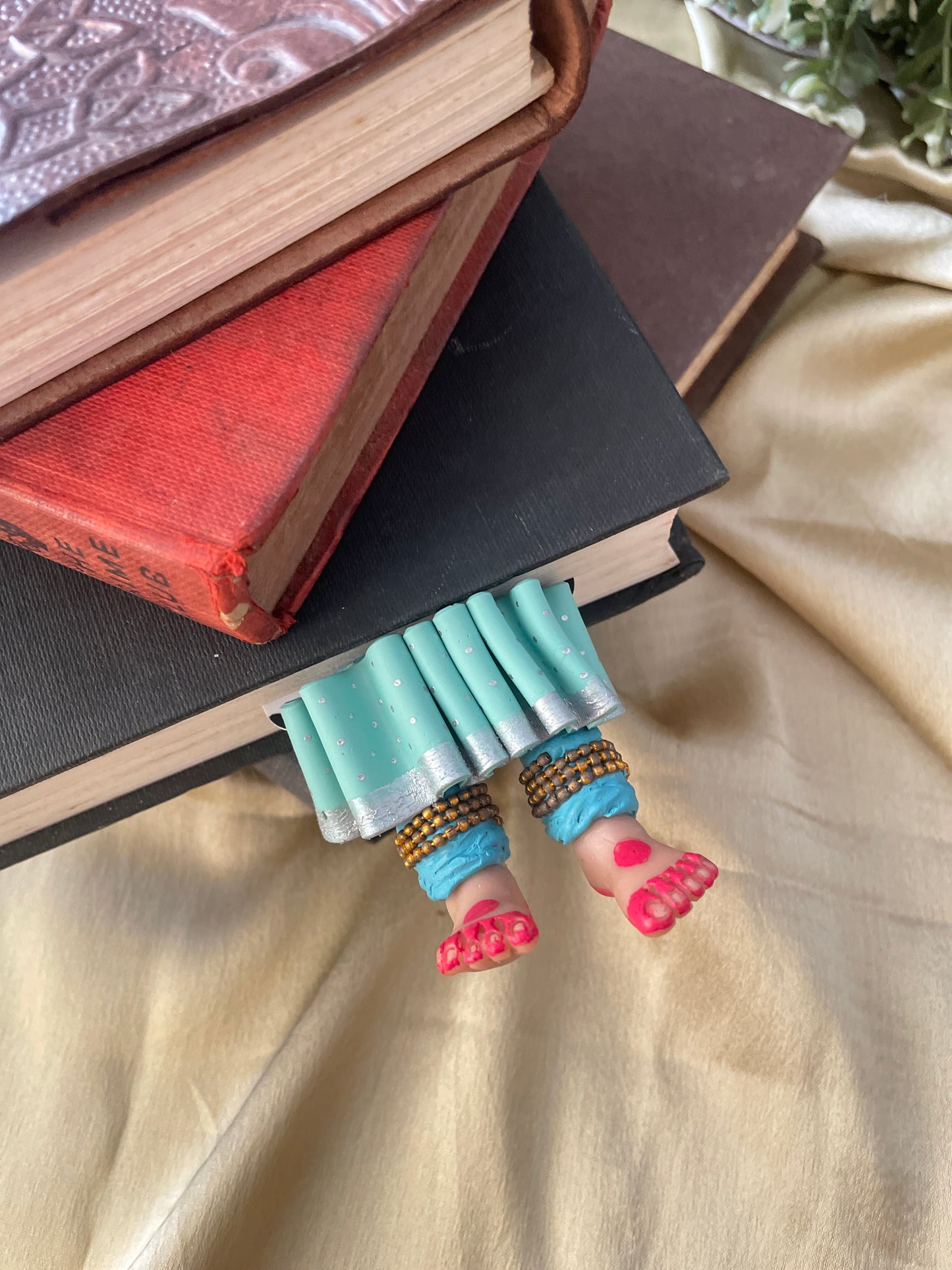 "Laissez-vous libre !" dit ce magnifique marque-page miniature aux longues jambes fait à la main danseuse kathak ! Conçu pour encourager un lecteur de livre à cesser de se retenir, ce marque-page personnalisé affiche des lignes éclairantes. Ce marque-page les présente dans une essence indienne en incluant la moitié inférieure des jambes et des pieds d'un mini danseur Kathak, avec anarkali, ghunghroos et alta !