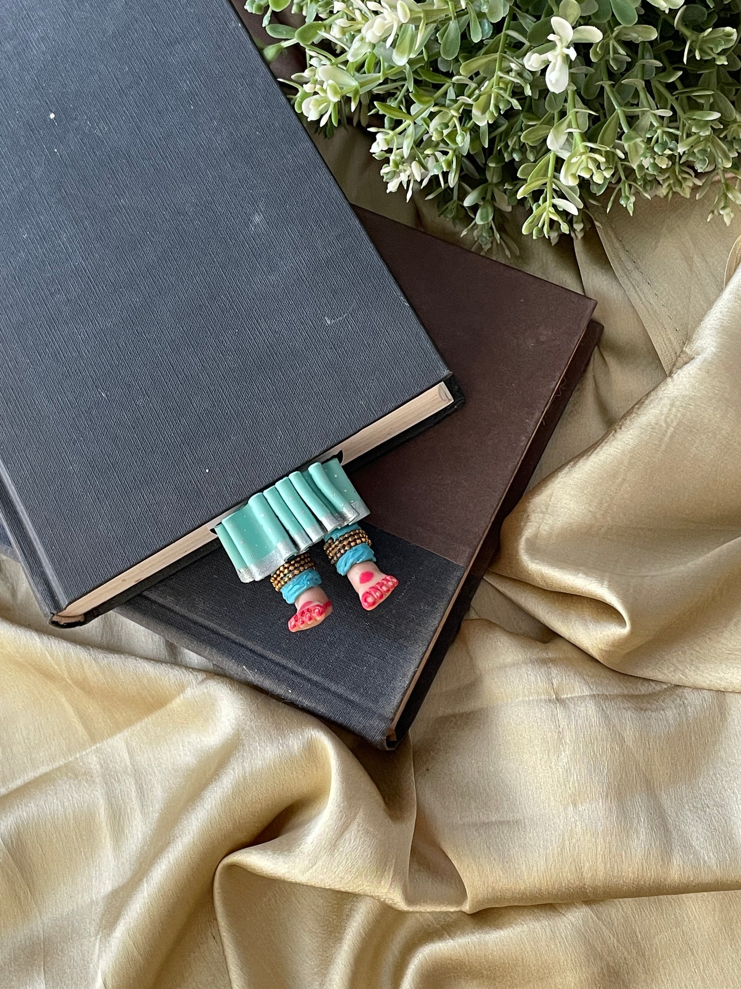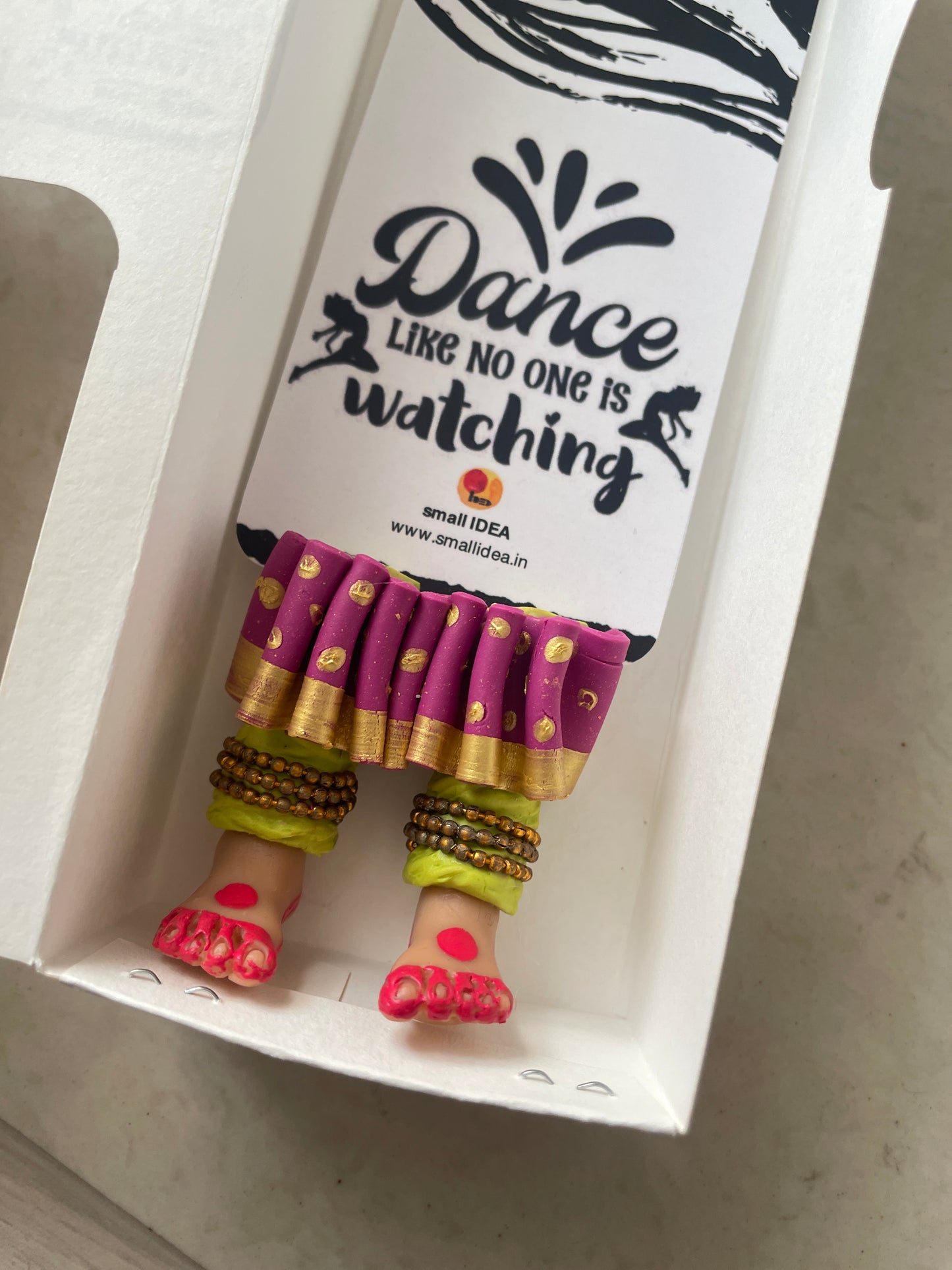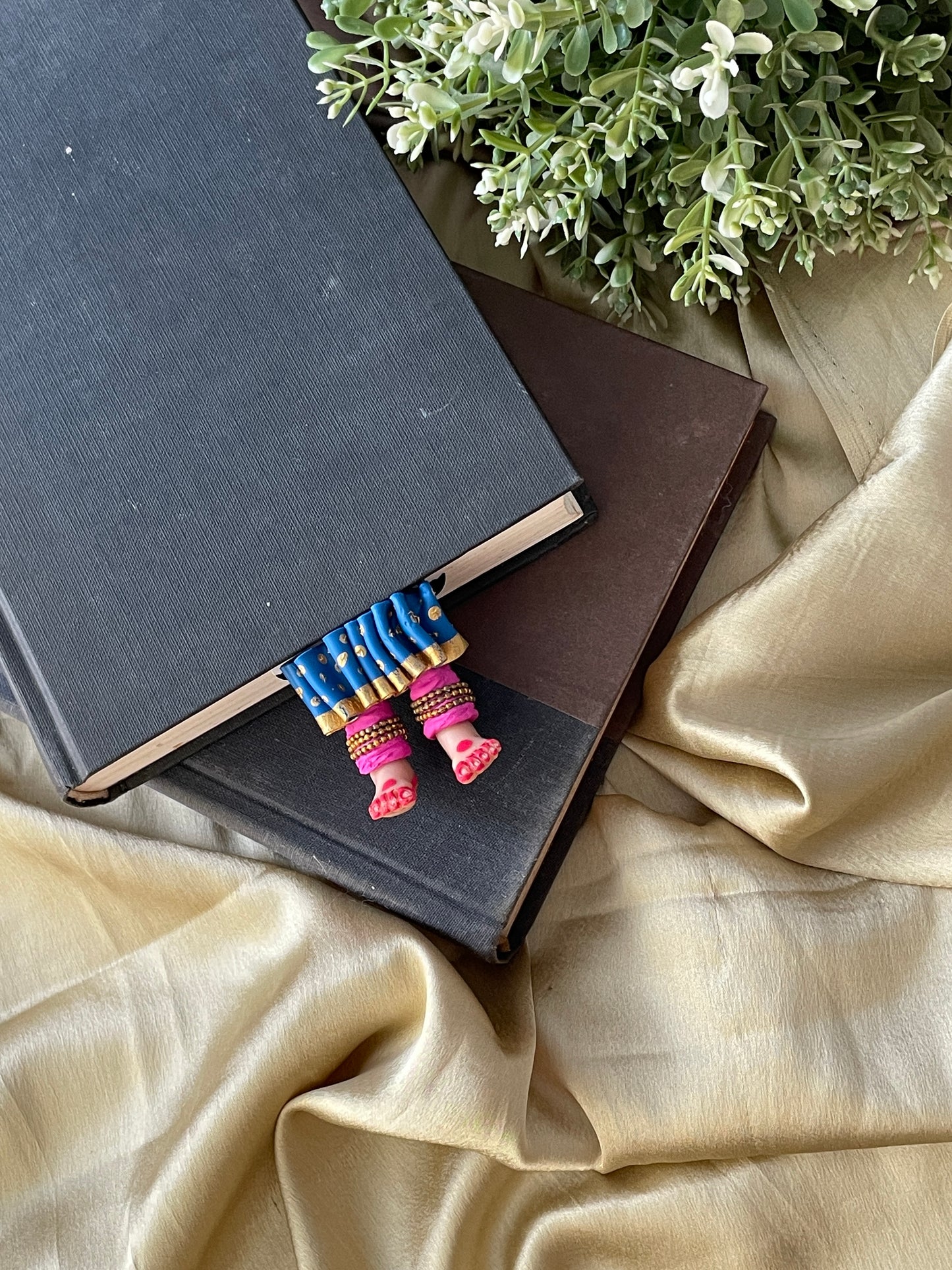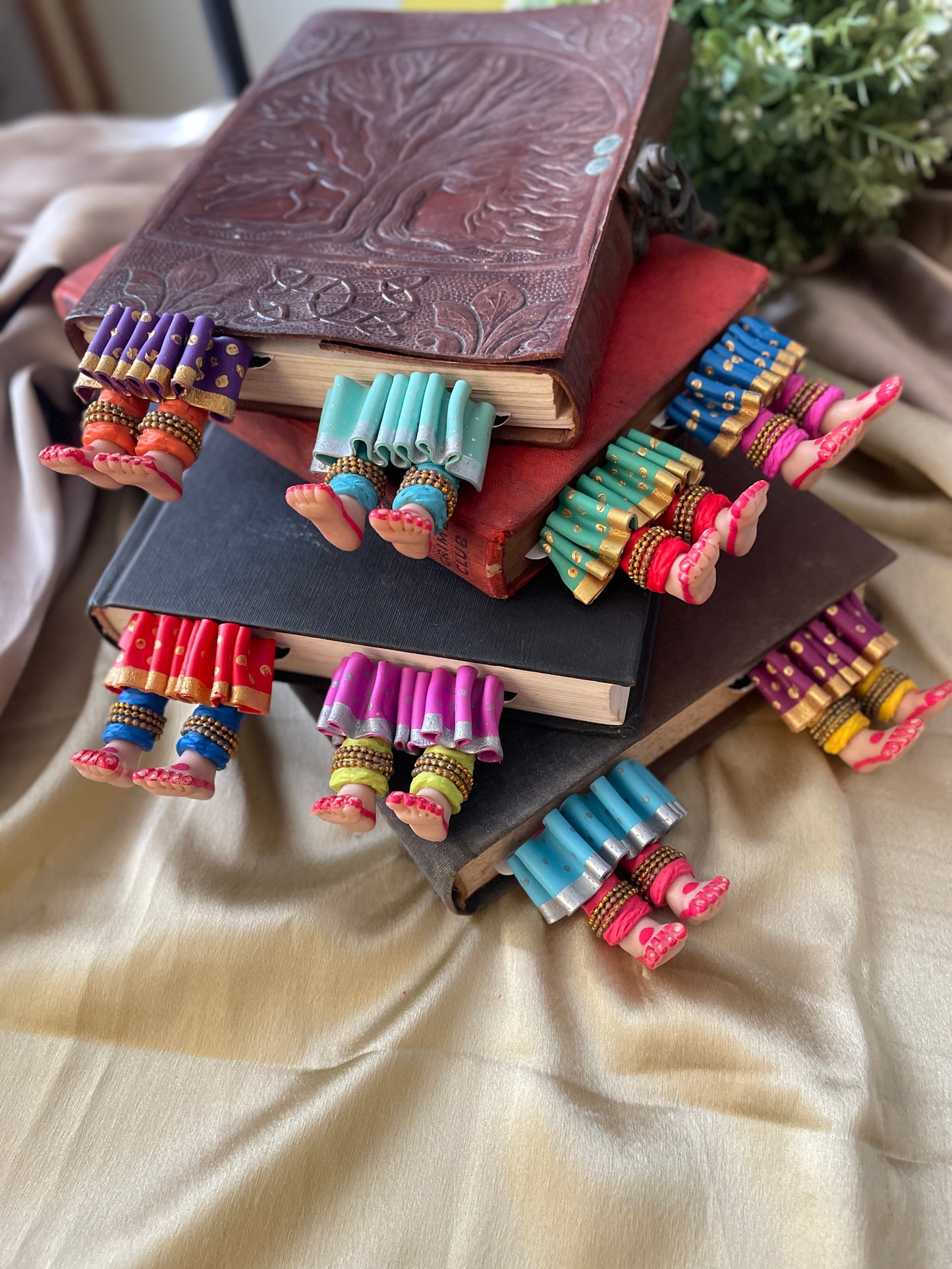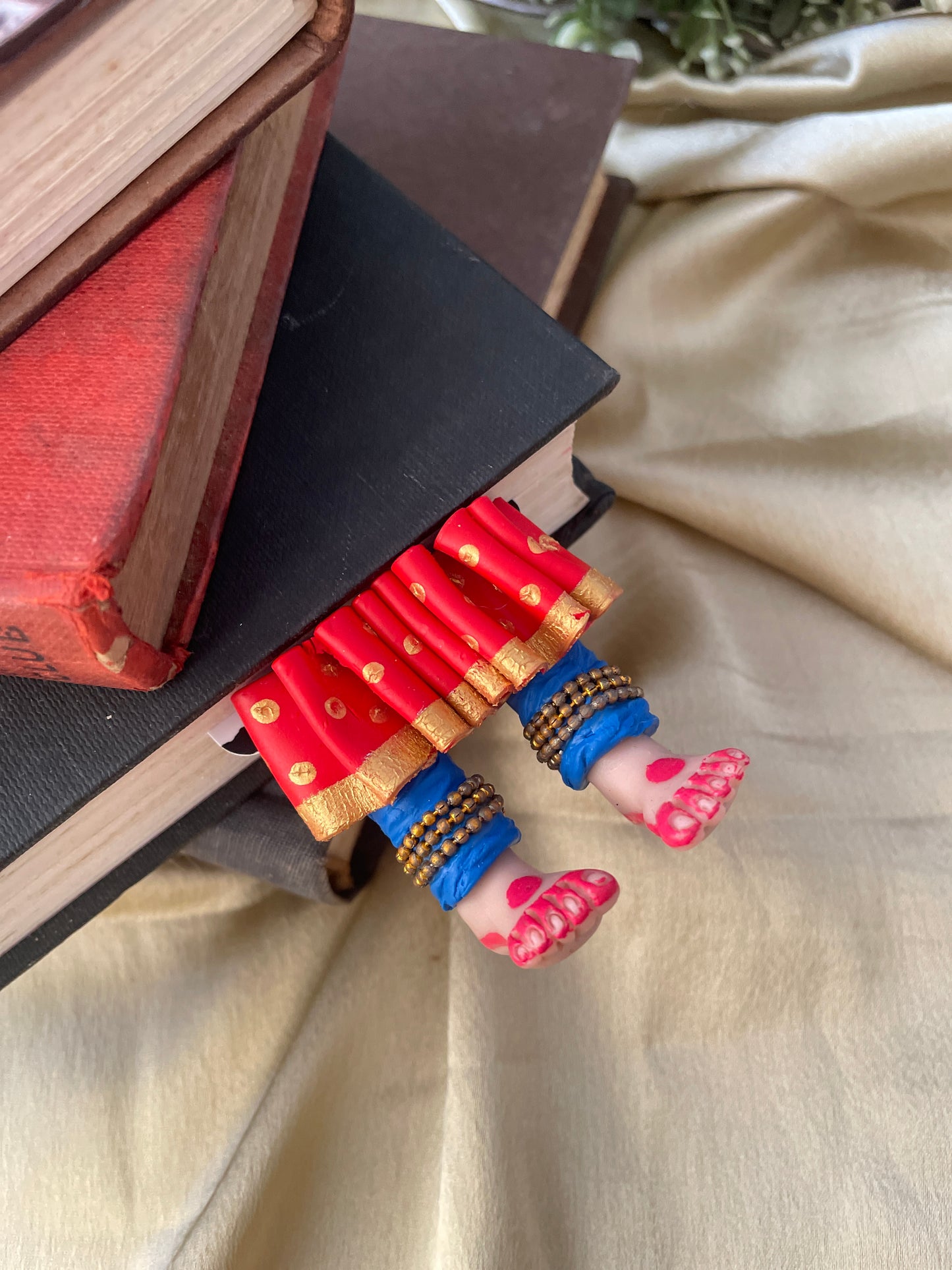"Laissez-vous libre !" dit ce magnifique marque-page miniature aux longues jambes fait à la main danseuse kathak ! Conçu pour encourager un lecteur de livre à cesser de se retenir, ce marque-page personnalisé affiche des lignes éclairantes. Ce marque-page les présente dans une essence indienne en incluant la moitié inférieure des jambes et des pieds d'un mini danseur Kathak, avec anarkali, ghunghroos et alta !