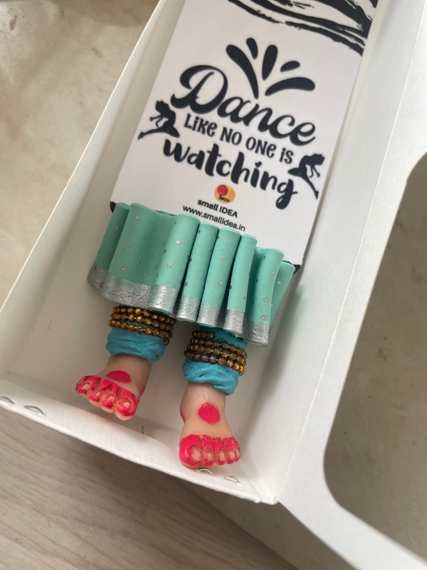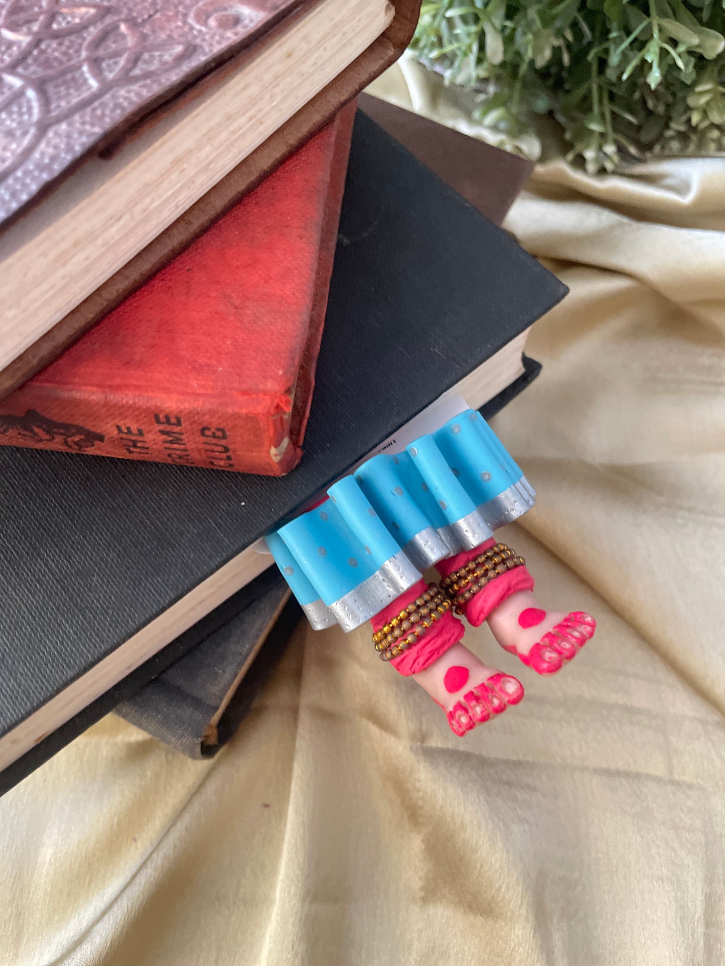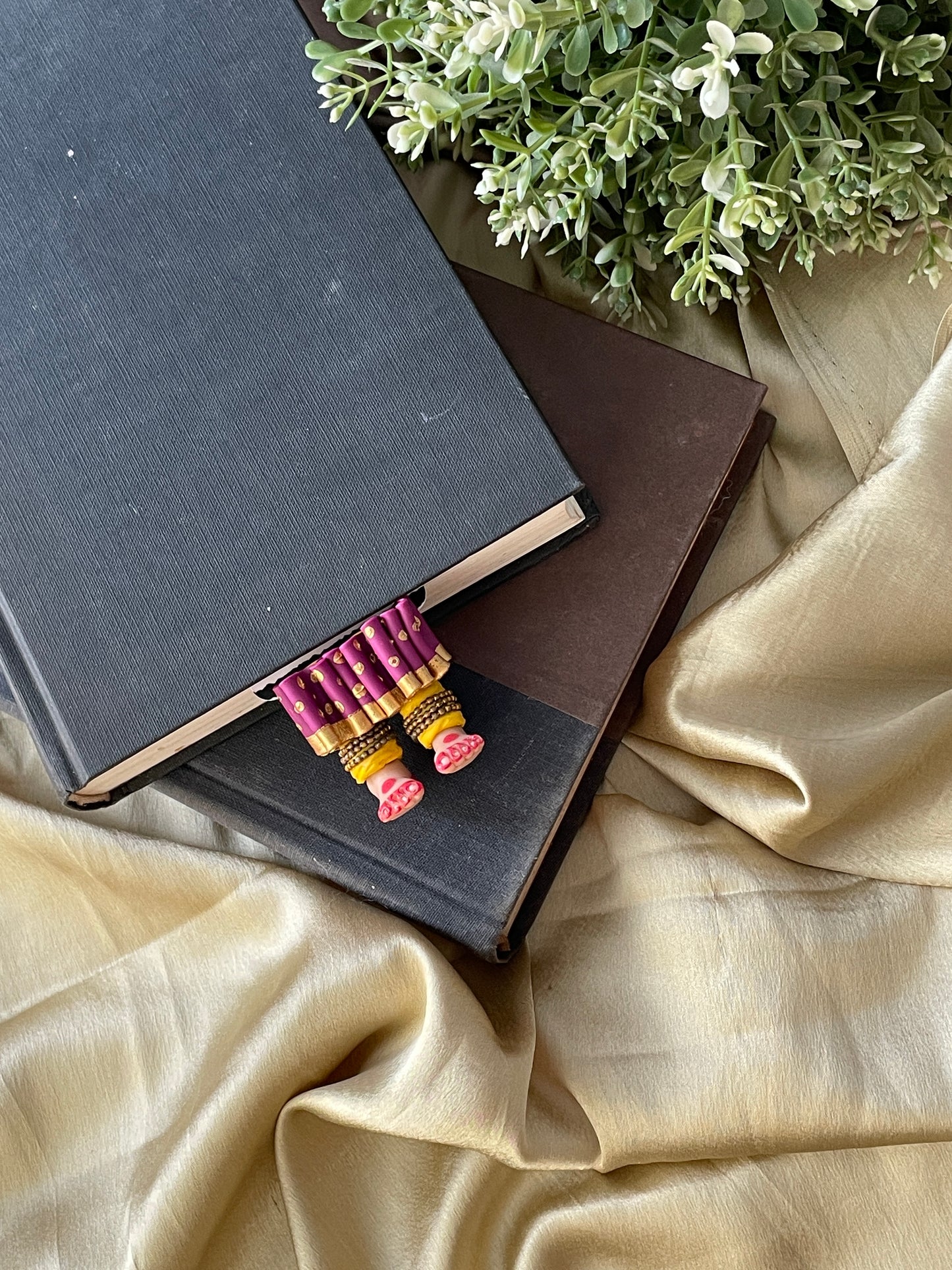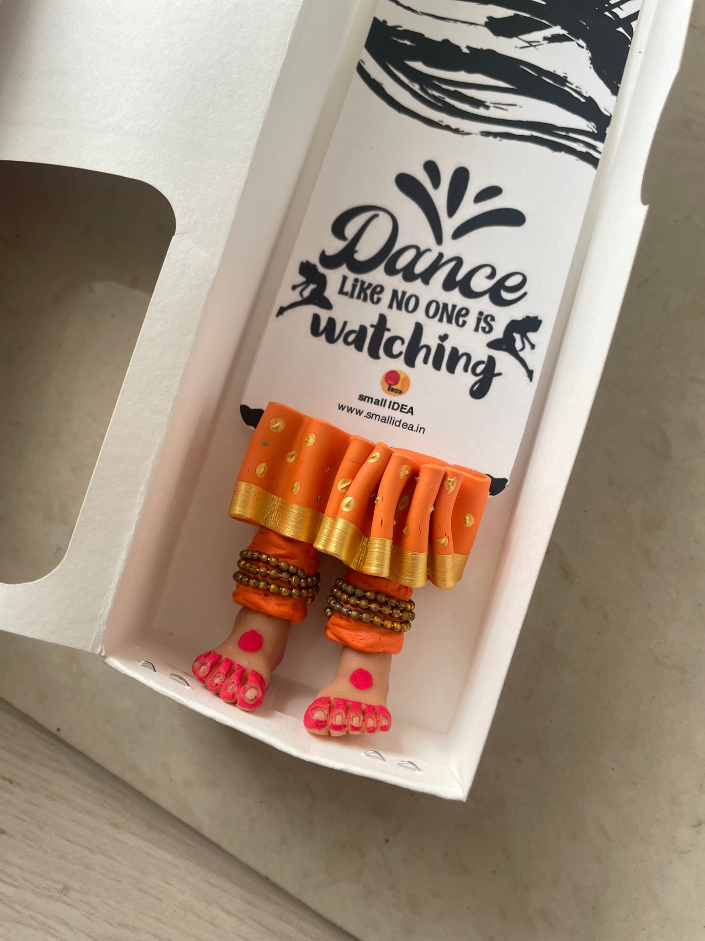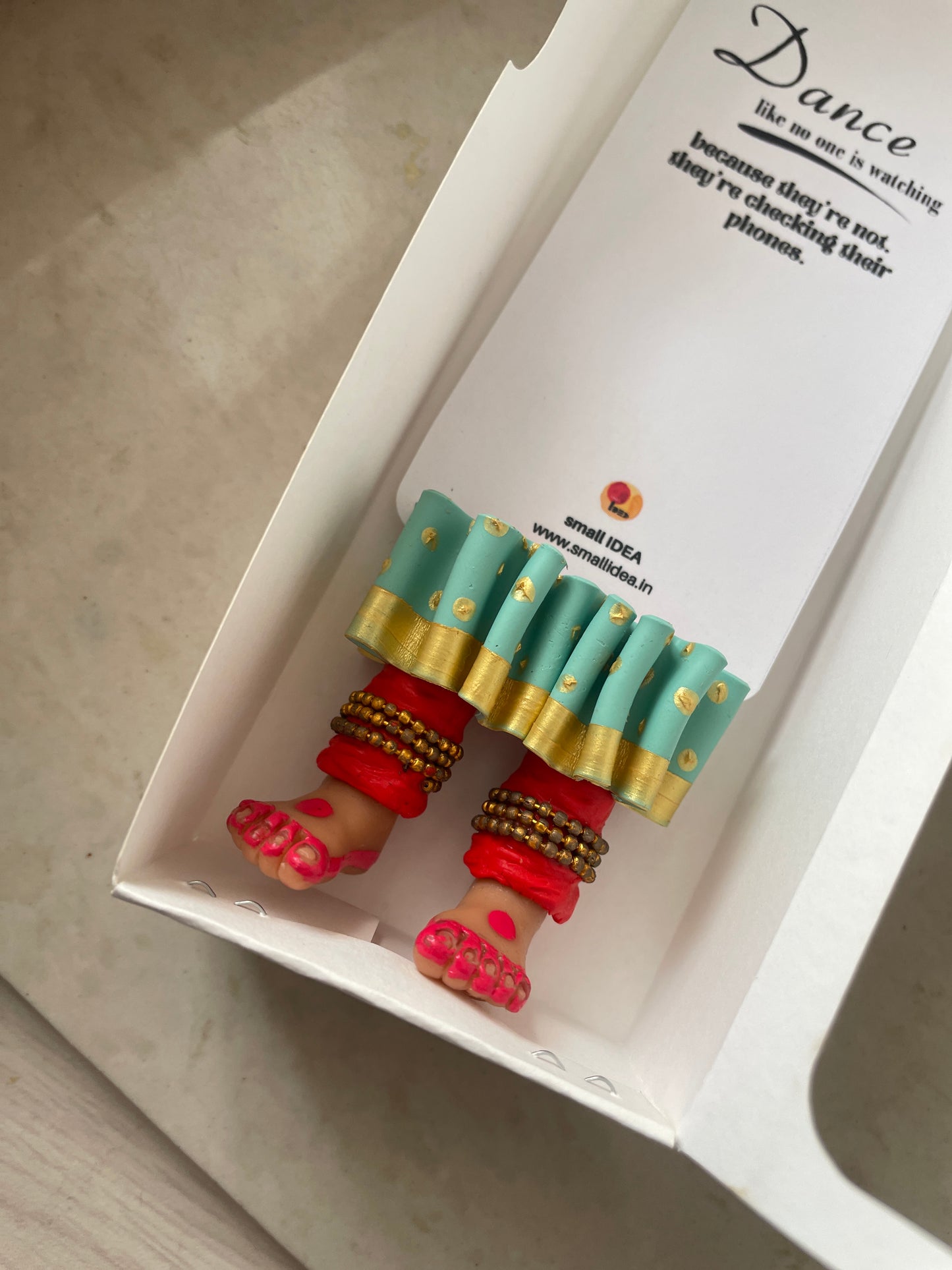 "Laissez-vous libre !" dit ce magnifique marque-page miniature aux longues jambes fait à la main danseuse kathak ! Conçu pour encourager un lecteur de livre à cesser de se retenir, ce marque-page personnalisé affiche des lignes éclairantes. Ce marque-page les présente dans une essence indienne en incluant la moitié inférieure des jambes et des pieds d'un mini danseur Kathak, avec anarkali, ghunghroos et alta !