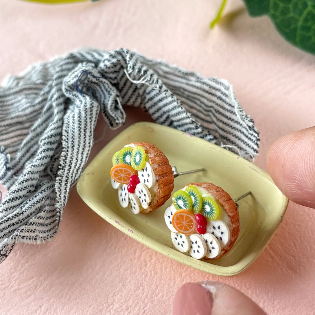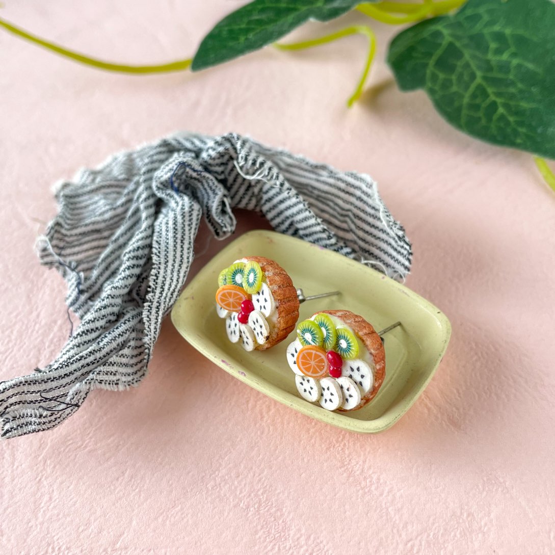 Tarte aux fruits à la crème Boucles d’oreilles alimentaires miniatures