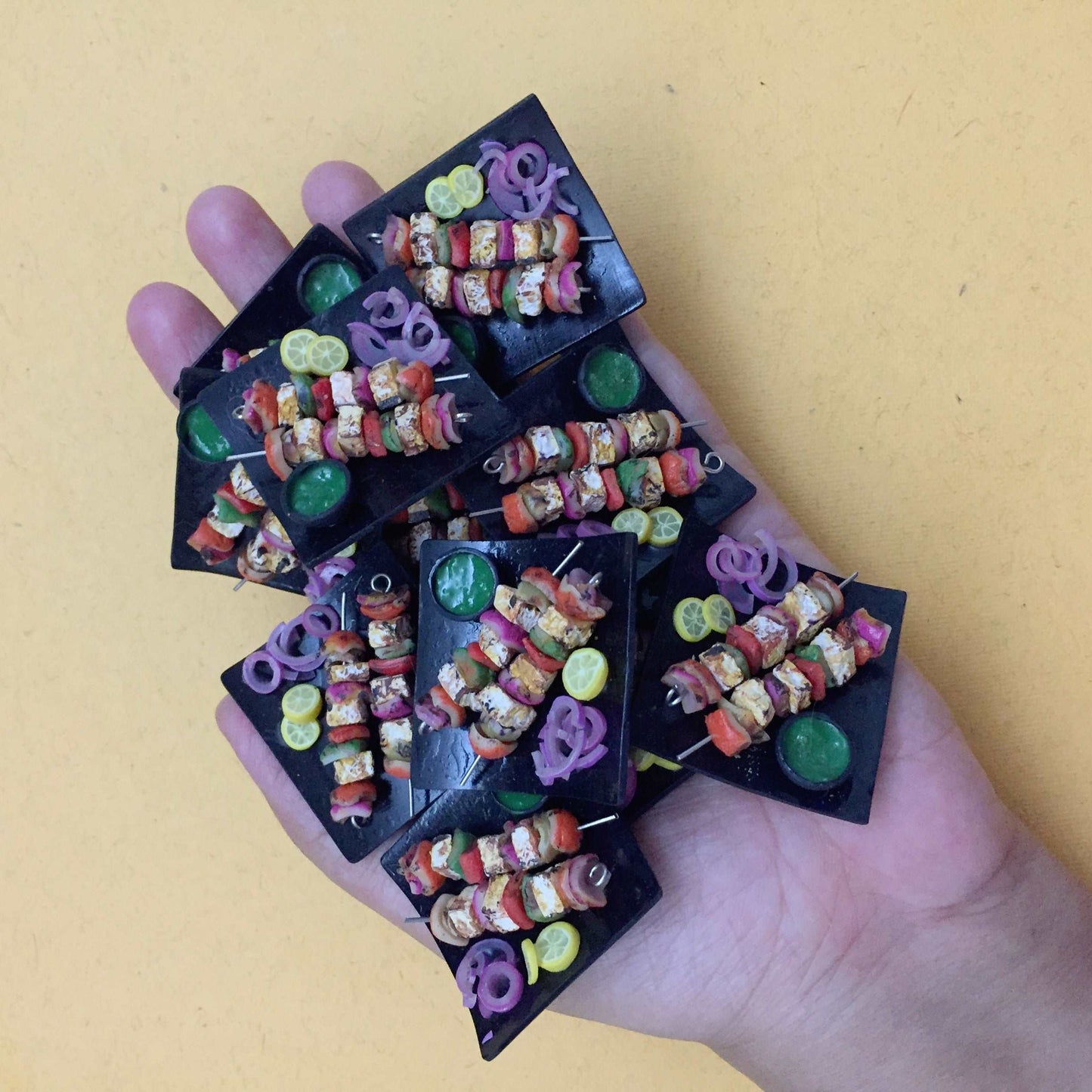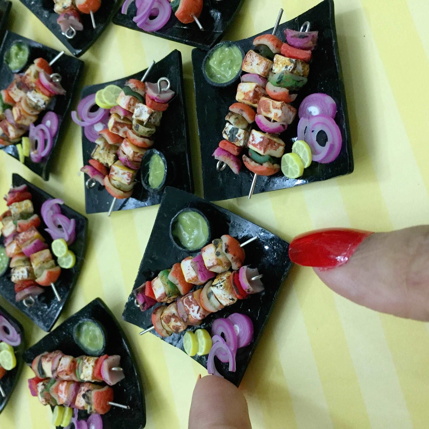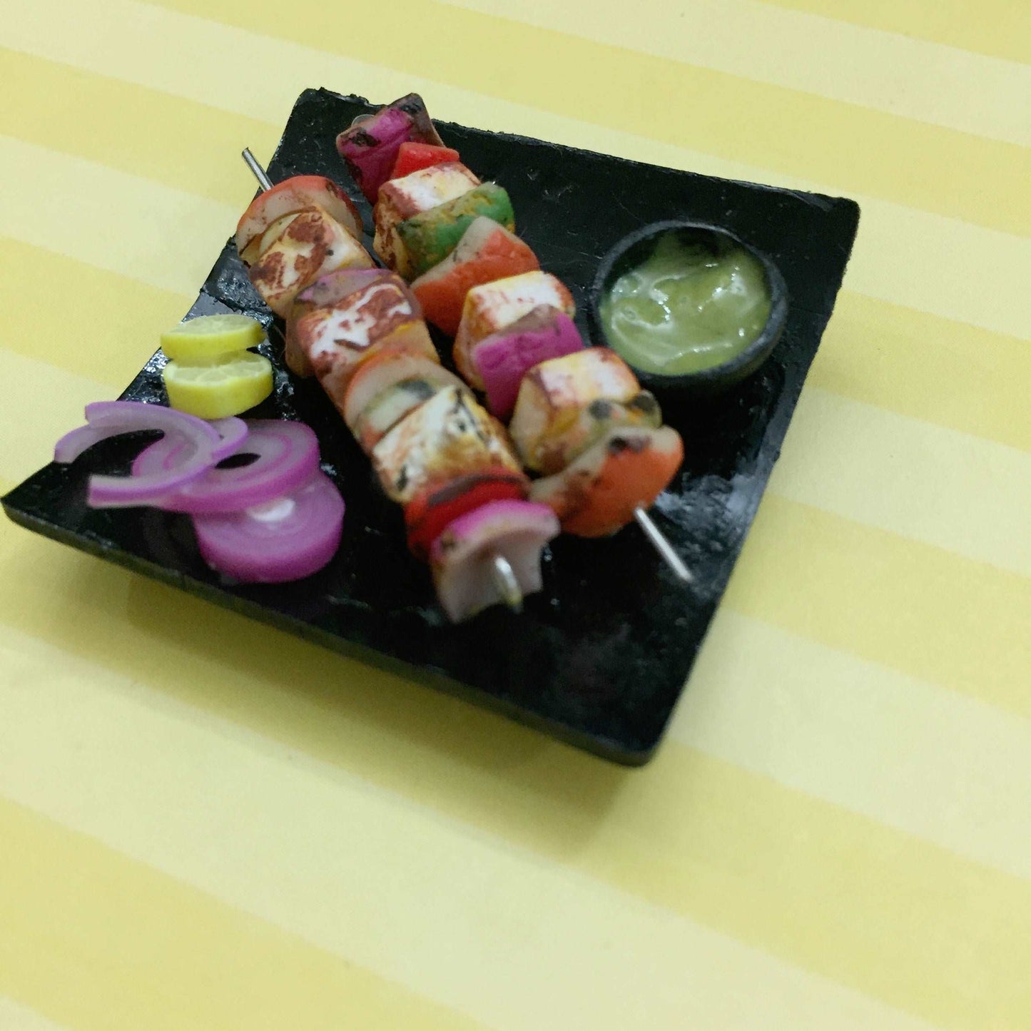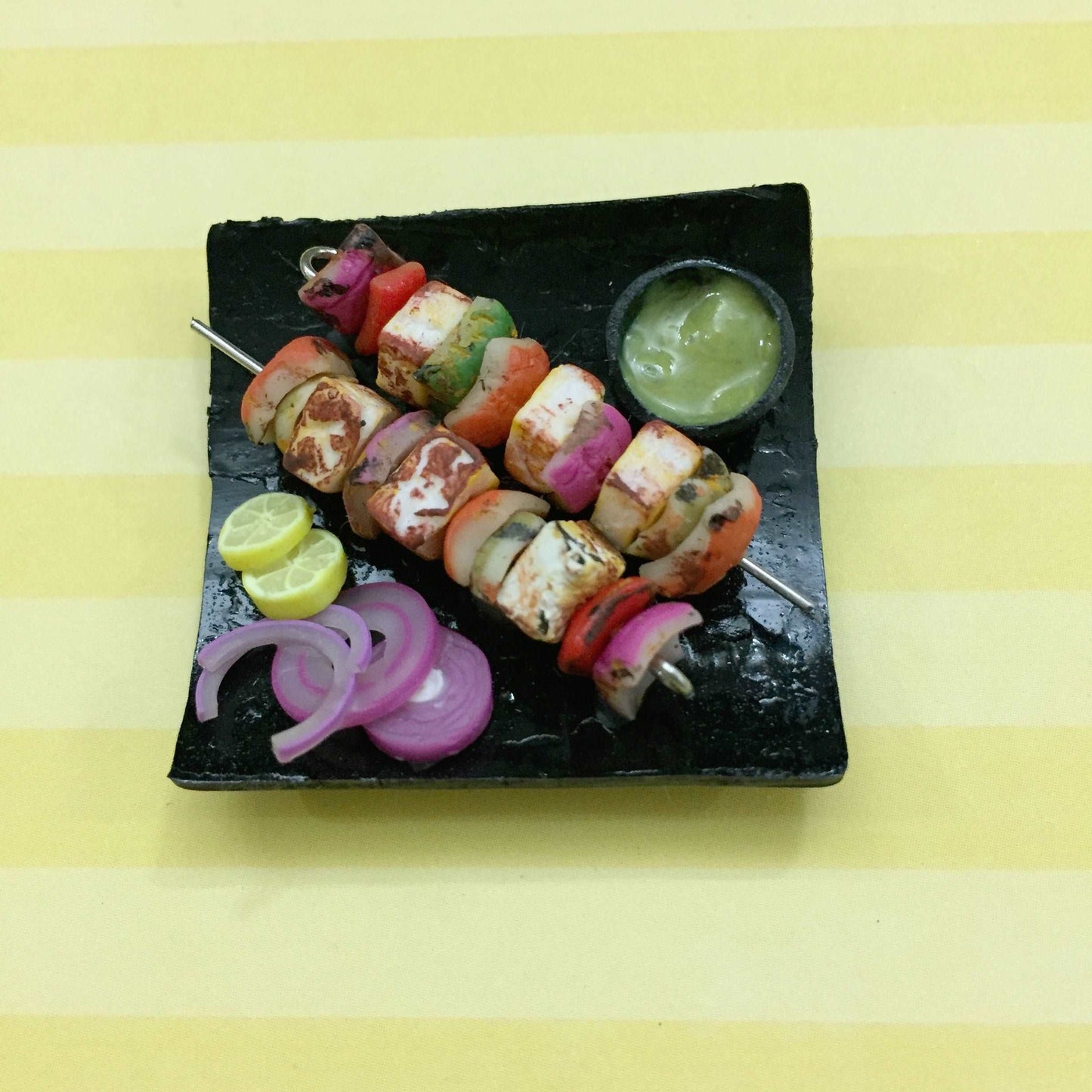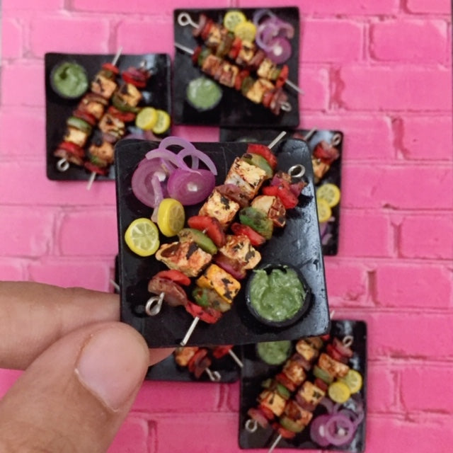 कुछ स्मोकी तंदूरी पनीर का विरोध कौन कर सकता है? यह ग्रिल्ड पनीर कबाब इंडियन मिनिएचर फूड मैगनेट में पनीर, स्वादिष्ट मिर्च और टमाटर के जले हुए टुकड़ों के साथ दो छोटे कटार रखे जा सकते हैं। साथ में अचार वाले प्याज के छल्ले, नींबू के टुकड़े और हरी चटनी का एक स्वादिष्ट कटोरा है। सभी रंग ब्लैक स्क्वायर प्लेट के खिलाफ पॉप करते हैं, जिससे यह अनूठा डिजाइनर फ्रिज चुंबक एक खाद्य प्रेमी मित्र के लिए अंतिम उपहार बन जाता है!